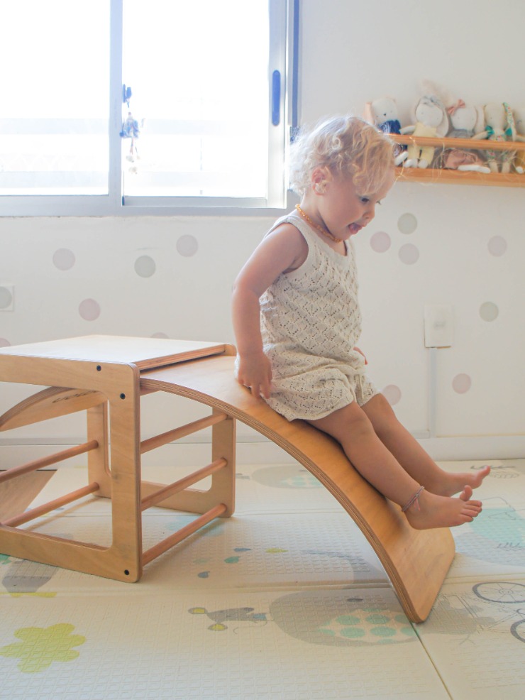 Las caras con barrotes sirven como apoyo cuando se empiezan a parar, ya que tienen la dimensión adecuada para que la manito se pueda sostener con seguridad y practicar pararse y volver al suelo. Cuando empiezan a caminar, el techo tiene la altura perfecta para que pueda servir de apoyo, y luego los barrotes sirven de escalera para trepar!!!